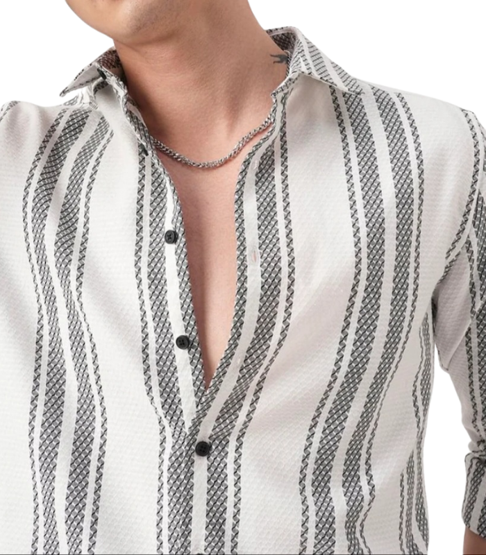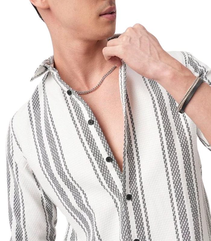 White & Black Textured Stripe Shirt