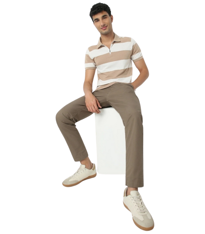 Be the first to review “Beige Broad Stripe Polo T-Shirt”