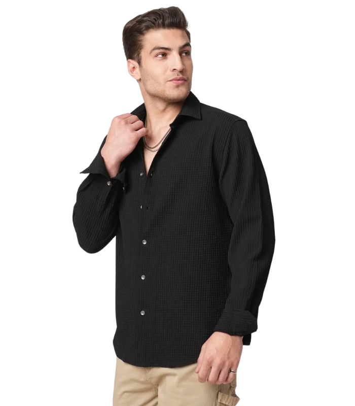 Crafted from breathable, soft cotton, it features a relaxed casual fit that ensures comfort from day to night. The subtle check pattern adds a touch of classic charm, while the spread collar enhances its laid-back yet refined vibe. Perfect for weekend getaways, summer brunches, or casual Friday looks, this shirt is your go-to for relaxed sophistication.