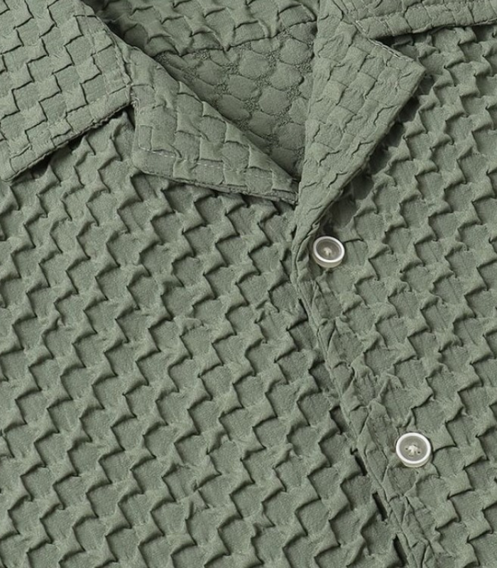 Olive Green 3D Weave Resort Shirt